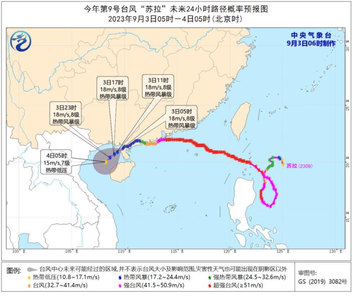 今年第9號臺風“蘇拉”未來24小時路徑概率預(yù)報圖