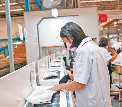 泰國員工在海爾空調(diào)生產(chǎn)線進(jìn)行操作。