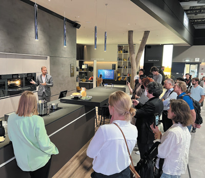 在2022年柏林國際消費(fèi)電子展期間,參觀者在卡薩帝展臺(tái)前了解智能廚房設(shè)備。