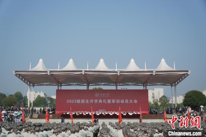 圖為重慶大學(xué)2023級(jí)本科生開(kāi)學(xué)典禮暨軍訓(xùn)動(dòng)員大會(huì)現(xiàn)場(chǎng)。中新網(wǎng)記者周毅攝