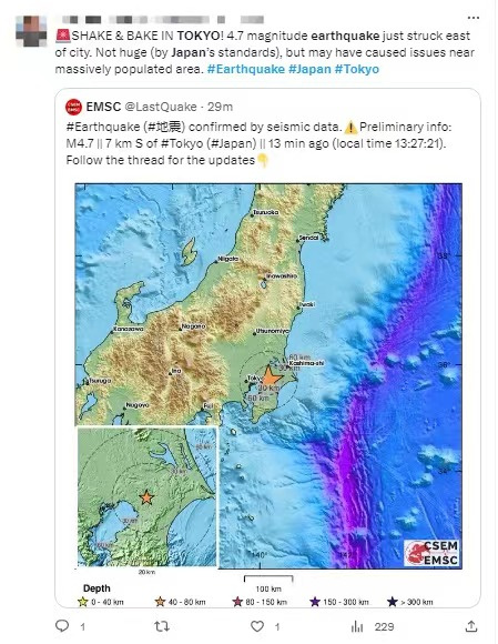 日本千葉縣6分鐘內(nèi)發(fā)生兩次地震 網(wǎng)友:東京有震感