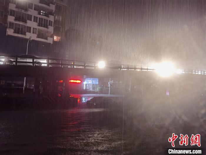 圖為9月5日夜間,福州暴雨,多地積水被淹。中新網記者龍敏攝