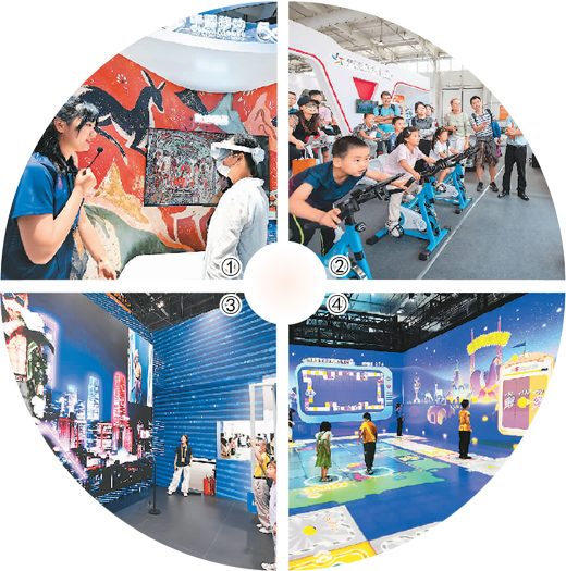 圖④:今年服貿(mào)會專題展聚焦行業(yè)熱點(diǎn)和發(fā)展趨勢,覆蓋AI和元宇宙技術(shù)、消費(fèi)電子服務(wù)等內(nèi)容。圖為服貿(mào)會首鋼園展區(qū),小觀眾在體驗(yàn)沉浸式游戲。