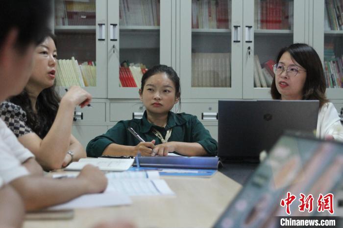 9月7日,在成都紡織高等??茖W(xué)校,“輪椅女孩”張曉麗(右二)與其無障礙服裝團(tuán)隊探討。王利文 攝