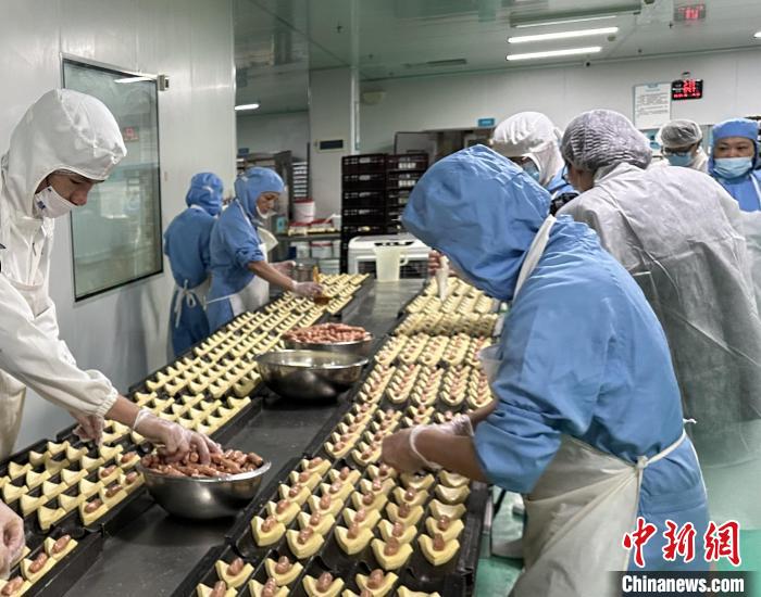 30年來(lái),羅莎蛋糕已從湖南走向全中國(guó),擁有300多家門(mén)店和2000多個(gè)員工。圖為員工在工廠做面包。 劉曼 攝