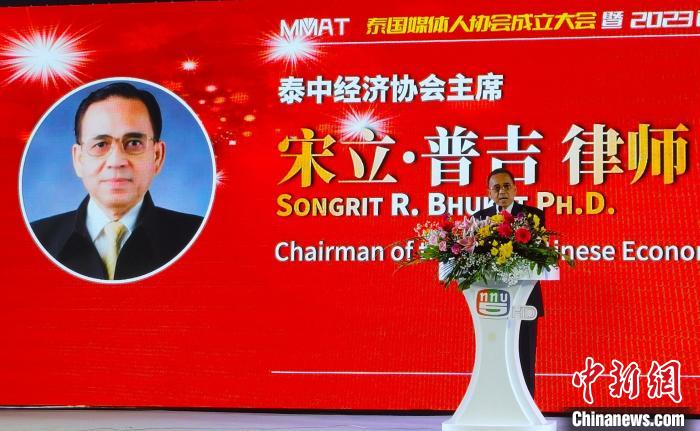 9月9日下午,泰中經(jīng)濟(jì)協(xié)會(huì)主席宋立·普吉在泰國媒體人協(xié)會(huì)成立大會(huì)上致辭?! ±钣趁?攝
