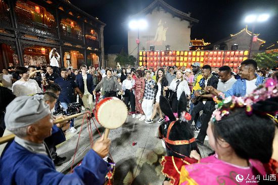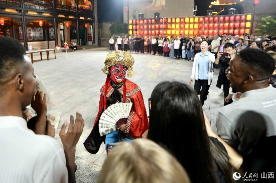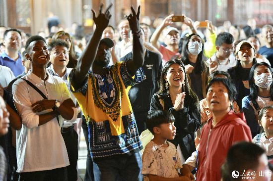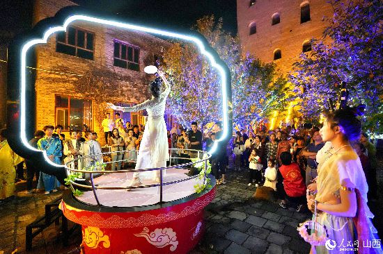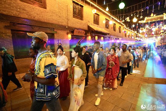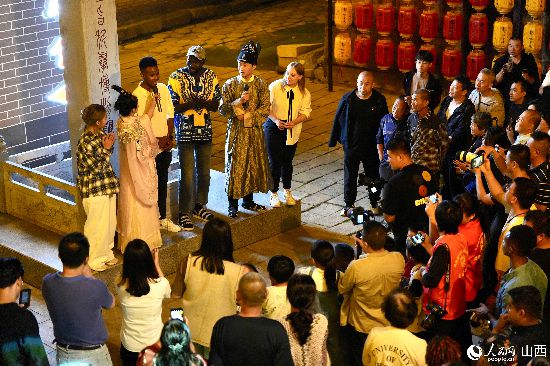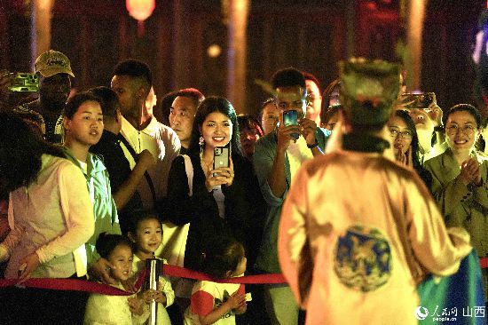 眼花繚亂的民俗表演,沉浸式的古城巡游,絢爛的城樓燈光秀,陶醉的狂歡……9月15日夜晚,在即將結(jié)束山西之行的前夜,2023“漢字緣”國際故事大會(huì)決賽的選手們夜游山西省晉城市陽城縣郭峪古城,于燈火闌珊處感受古城中的人間煙火。(人民網(wǎng) 盧鵬宇攝)