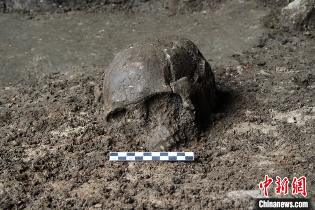 圖為2011年奇和洞遺址出土的古人類頭蓋骨。龍巖漳平市融媒體中心供圖