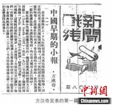方漢奇發(fā)表的第一篇論文《中國(guó)早期的小報(bào)》。中國(guó)人民大學(xué)新聞學(xué)院 供圖