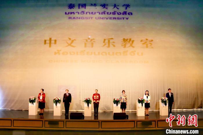 泰國蘭實大學與中外語言交流合作中心合作設(shè)立的泰國首家“中文音樂教室”19日舉行揭牌典禮。趙婧楠 攝