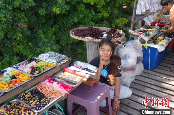 10月1日,緬甸曼德勒,街頭一位商販在售賣翡翠玉石飾品等商品?!≈行律缬浾?劉冉陽 攝