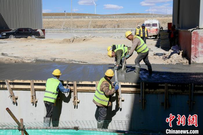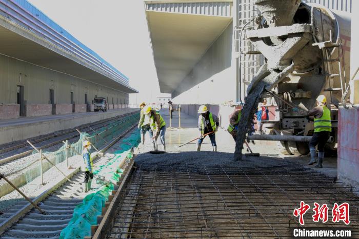 圖為西藏那曲物流園區(qū)綜合5站臺大修施工現(xiàn)場進行混凝土澆筑作業(yè)。馬生明 攝