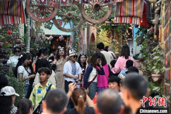 雙節(jié)期間,喀什作為新疆重要旅游目的地之一,迎來旅游高峰。10月1日,中新網(wǎng)記者來到喀什古城景區(qū),看到熙熙攘攘的游客們漫步在縱橫交錯的巷道里,時不時駐足停留。10時,在古城東門,觀看開城儀式的游客紛紛拿出手機打卡??κ补懦蔷皡^(qū)管委會對外宣傳科科長阿地力江·阿不都卡德爾說,今年喀什旅游非常火熱,很多游客慕名而來,品嘗當(dāng)?shù)孛朗?,感受民族風(fēng)情,帶動了喀什古城景區(qū)的整體經(jīng)濟發(fā)展。