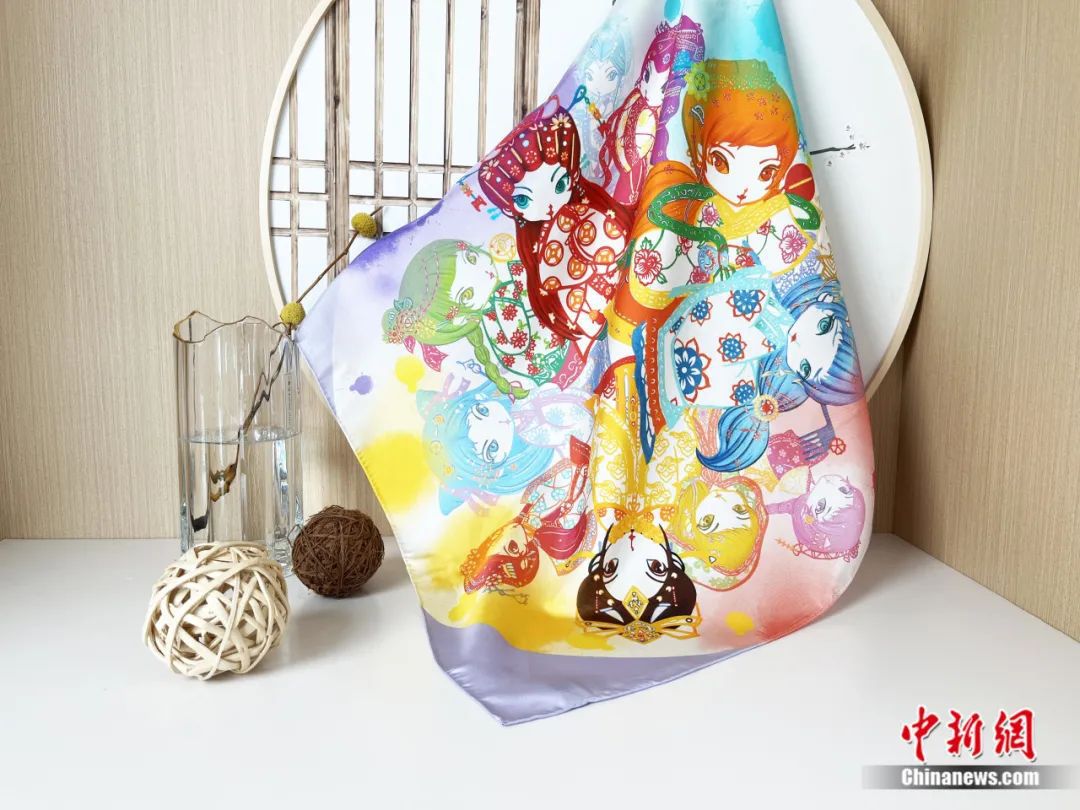 非遺剪紙金陵十二釵動漫絲巾。湖州市委宣傳部供圖