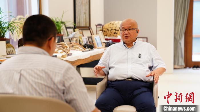 臺企敏實(shí)集團(tuán)創(chuàng)始人、敏實(shí)控股集團(tuán)董事會主席秦榮華近日在浙江嘉興接受中新社記者專訪?!≈行律缬浾?沈亦山 攝
