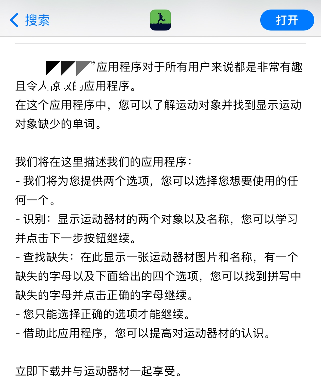 這些涉黃APP陸續(xù)被曝光、下架后,中新網(wǎng)發(fā)現(xiàn),一名網(wǎng)友在社交平臺(tái)提到一款偽裝成工具類APP的軟件,該軟件在蘋果應(yīng)用商店依然可以搜索到。應(yīng)用簡(jiǎn)介界面顯示,該軟件年齡限制分級(jí)為4歲以上,并提示“借助此應(yīng)用程序,您可以提高對(duì)運(yùn)動(dòng)器材的認(rèn)識(shí)”。而進(jìn)入這款A(yù)PP后,頁(yè)面上充斥著大量黃色視頻,并以視頻鏈接為其他黃色軟件引流,其實(shí)際內(nèi)容,與蘋果應(yīng)用商店所介紹的完全不同。