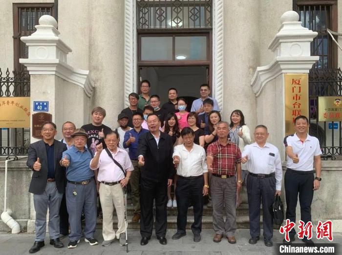 參加廈門(mén)市臺(tái)聯(lián)周三會(huì)客廳的臺(tái)胞在廈門(mén)臺(tái)灣公會(huì)會(huì)館前合影。陳雅璇 攝