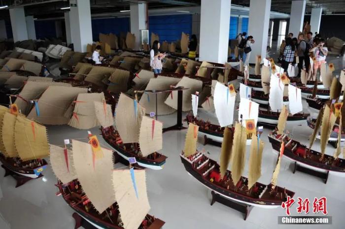 資料圖:著名探險家金飛豹“復(fù)原”的鄭和艦隊(duì)。中新社發(fā) 劉冉陽 攝
