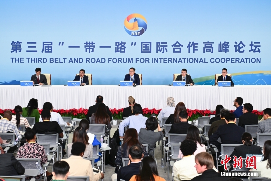 10月16日,第三屆“一帶一路”國際合作高峰論壇新聞中心在位于北京的國家會議中心舉行首場吹風(fēng)會,邀請自然資源部國際合作司和相關(guān)單位負(fù)責(zé)人介紹有關(guān)情況,并回答記者提問。圖為吹風(fēng)會現(xiàn)場。 中新社記者 田雨昊 攝