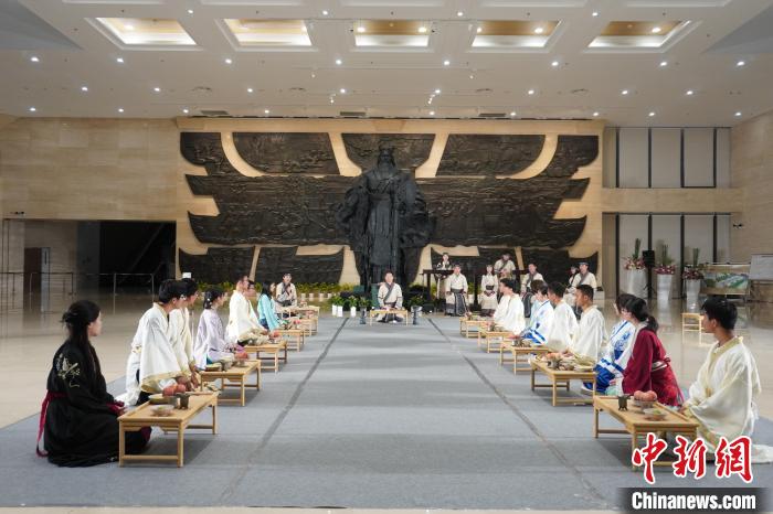 圖為研學(xué)團隊在鄭州商都遺址博物院體驗商周晚宴。(資料圖)韓章云攝
