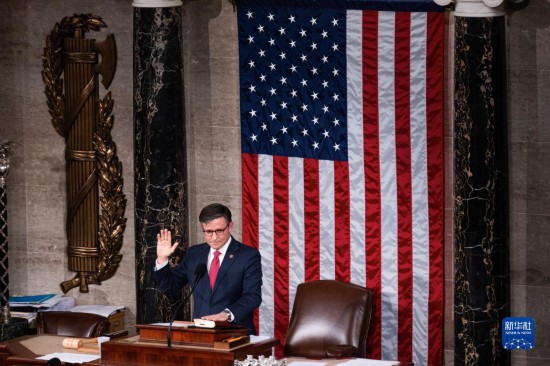 10月25日,在美國華盛頓國會,新當選的眾議院議長邁克·約翰遜宣誓就職。新華社發(fā)(亞倫攝)