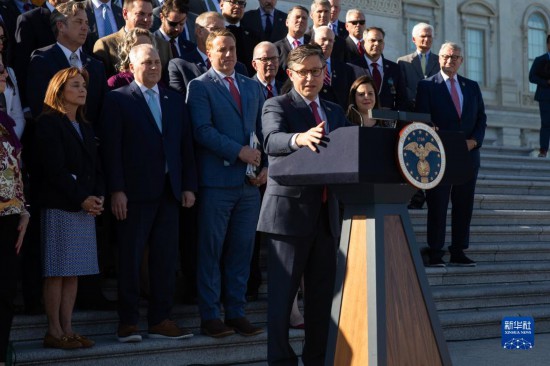 10月25日,在美國華盛頓國會,新當選的眾議院議長邁克·約翰遜發(fā)表講話。新華社發(fā)(亞倫攝)