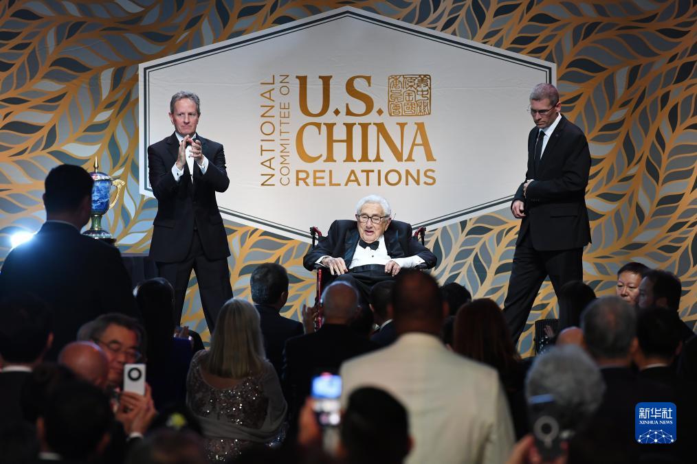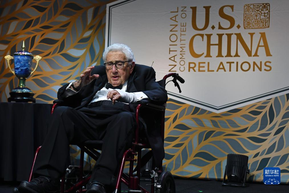 百歲高齡的基辛格在接受頒獎時,全場嘉賓報以持久熱烈掌聲。他在獲獎致辭中說,“我一生中一半時間都在為美中關(guān)系工作”,美中之間的和平與合作至關(guān)重要,符合兩國和世界的利益。