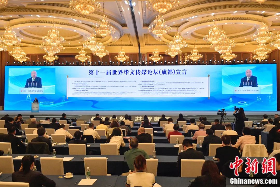 中國(guó)新聞社總編輯張明新宣讀了《第十一屆世界華文傳媒論壇(成都)宣言》,呼吁華文媒體秉持初心,為推動(dòng)中外文明交流互鑒、民心相通作出新的更大貢獻(xiàn)。