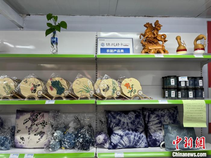 錦州市北普陀山景區(qū)的“錦州好禮”殘疾人非遺愛心助殘專柜展示。李晛 攝