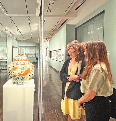 美國舊金山亞洲藝術(shù)博物館近期舉辦中國瓷器展覽。圖為當?shù)貢r間11月13日,參觀者在欣賞藝術(shù)品。