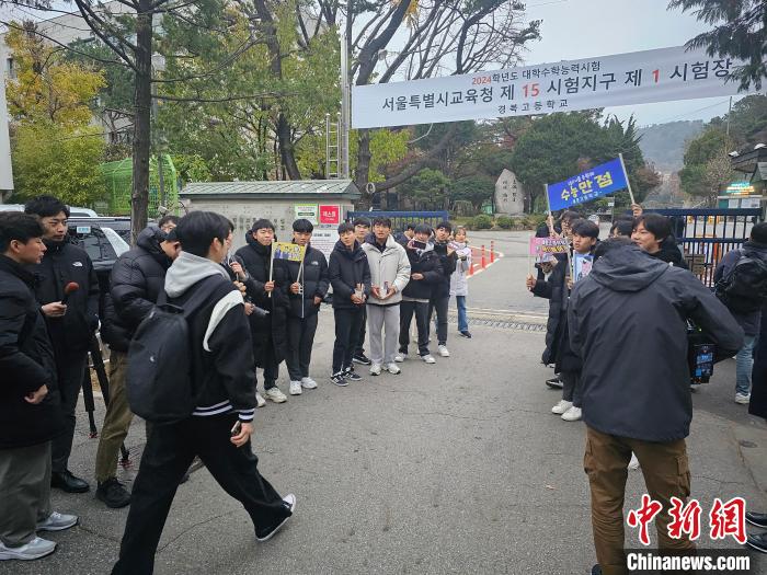 11月16日,韓國(guó)舉行“2024學(xué)年度大學(xué)修學(xué)能力考試”(高考)。圖為當(dāng)日7時(shí)許,考生進(jìn)入首爾市鐘路區(qū)一考場(chǎng)。中新社記者 劉旭 攝