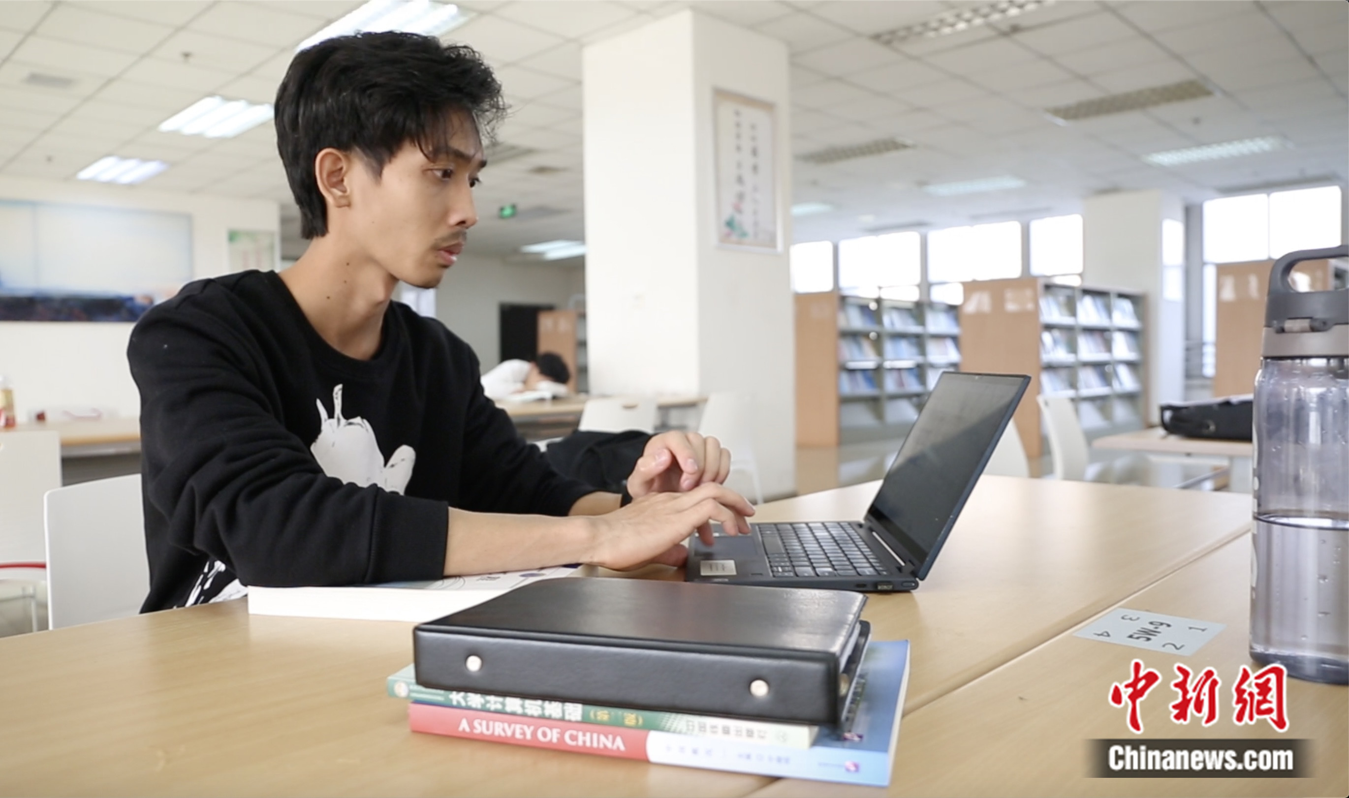 2023年10月,圖為印尼留學(xué)生陳君其在圖書(shū)館查閱資料。高瑩 攝