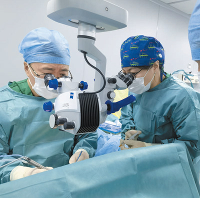 北大人民醫(yī)院主任醫(yī)師侯憲如(左)與該院眼科主治醫(yī)師孟慶娛共同為烏茲別克斯坦患者進行白內(nèi)障手術(shù)。