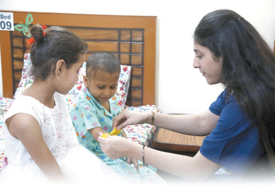考慮到兒童病患的特殊性,“小家”一直將孩子們的心理疏導(dǎo)作為志愿工作的重點?!昂⒆觽兊男睦頎顟B(tài)很重要?!薄靶〖摇卑头截?fù)責(zé)人蘇比婭·阿德南說。阿德南有30多年的兒童公益服務(wù)經(jīng)歷,在她和巴中兩國同事的引導(dǎo)下,孩子們相互鼓勵支持,在閑暇時制作各種手工藝品布置“小家”。
