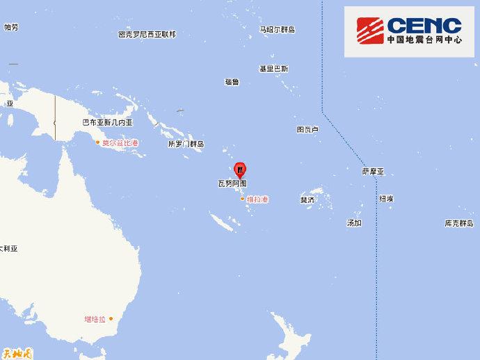 中新網(wǎng)11月22日電 中國地震臺網(wǎng)正式測定:11月22日12時47分在瓦努阿圖群島(南緯15.05度,東經168.15度)發(fā)生6.9級地震,震源深度10千米。