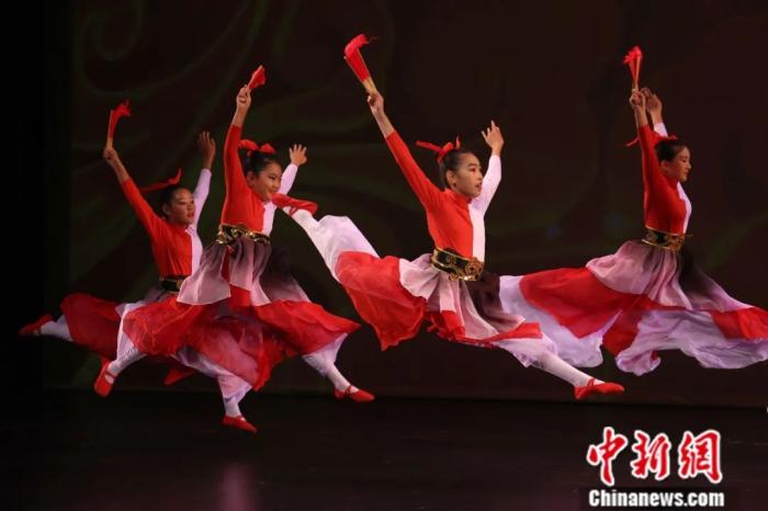 2023年9月,加拿大大多倫多地區(qū)萬錦市,加拿大舞蹈藝術(shù)聯(lián)盟舉辦首屆舞蹈大賽。圖為一支中國舞兒童組參賽隊進(jìn)行表演。余瑞冬 攝