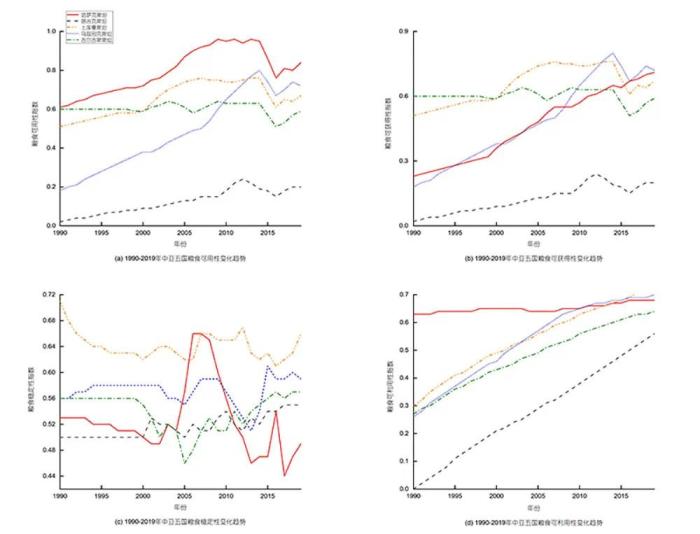 1990年-2019年中亞五國糧食安全二級(jí)指標(biāo)變化趨勢。譚亮成 供圖