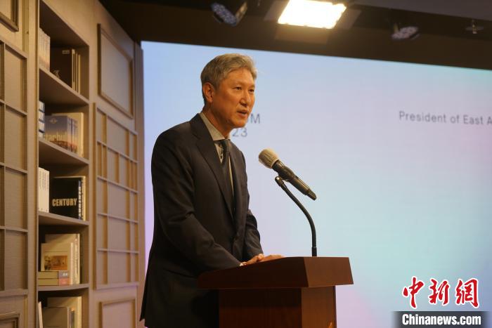 圖為韓國東亞文化中心院長盧載憲致辭。記者 劉旭 攝