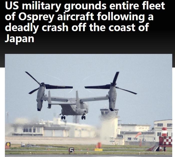 美聯(lián)社指出,此次墜機(jī)事件再次引發(fā)了對“魚鷹”飛機(jī)安全性的質(zhì)疑。美國空軍、海軍和海軍陸戰(zhàn)隊采取了非同尋常的措施,停飛了數(shù)百架飛機(jī)。