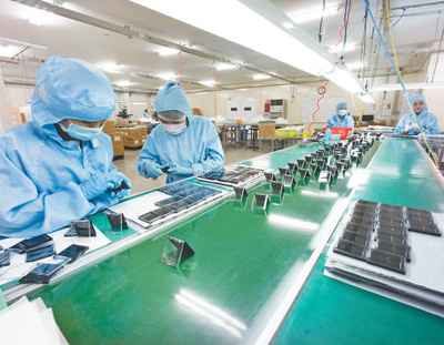 龍江工業(yè)園內(nèi),方正電機(越南)有限責(zé)任公司車間里的當(dāng)?shù)貑T工正在工作。