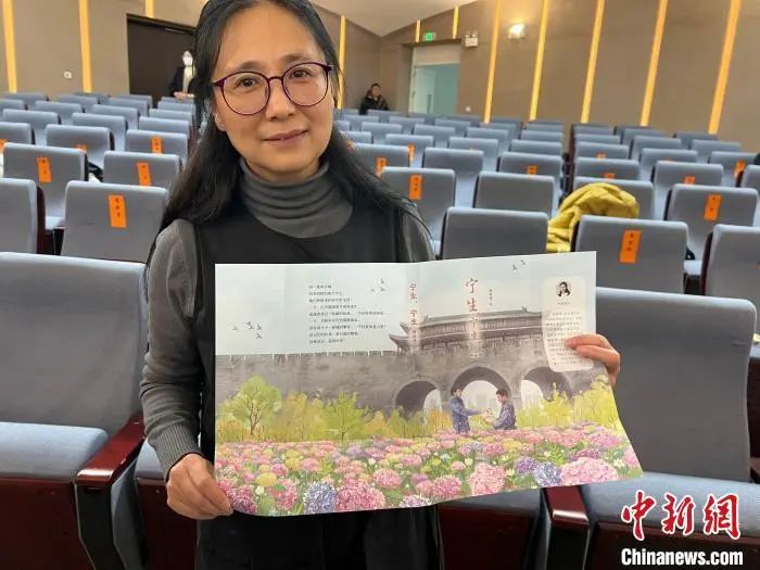 南京市長(zhǎng)江路小學(xué)英語(yǔ)教師楊筱艷展示她創(chuàng)作的《寧生,寧生》書(shū)籍封面。朱曉穎 攝