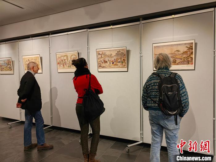 來賓觀賞年畫?!?柏林中國文化中心供圖)
