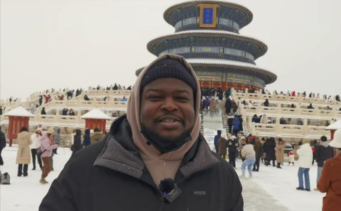 當(dāng)日正值大雪,銀裝素裹的天壇宛如一幅畫卷,古老的祈年殿在白雪的映襯下更顯莊重肅穆。留學(xué)生們沉浸在大雪紛飛的美景中,紛紛拿出手機(jī)互相打卡拍照,記錄下這美好瞬間。哈薩克斯坦籍留學(xué)生阿迪力(ARYSTAN ADIL)向記者介紹,這是他第一次來(lái)到天壇,“天壇是古代皇帝祭天祈雨的地方,我對(duì)中國(guó)的歷史很感興趣?!卑⒌狭φf(shuō)。