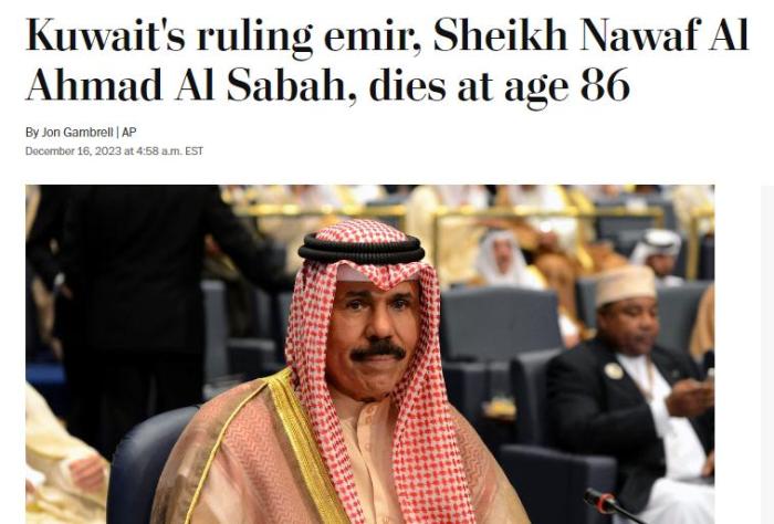 中新網(wǎng)12月16日電 據(jù)法新社最新消息,科威特埃米爾(國家元首)納瓦夫·艾哈邁德·賈比爾·薩巴赫去世,終年86歲。