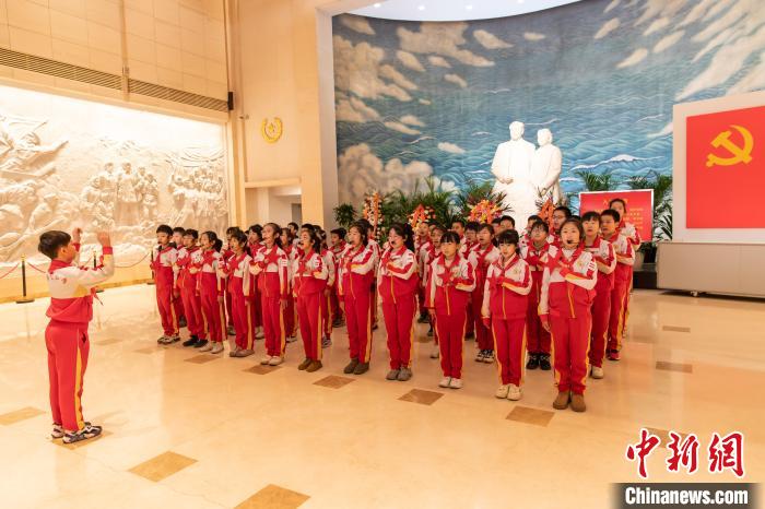隨后,天津市川府里小學(xué)學(xué)生為大家?guī)砭世收b《為中華之崛起而讀書》,再現(xiàn)了周恩來青年時代在奉天(今沈陽)東關(guān)模范學(xué)校上學(xué)時立下的宏偉志向。伴隨著《紅星閃閃》的嘹亮歌曲,新時代少年立下了“故今日之責(zé)任,不在他人,而全在我少年。少年智則國智,少年富則國富,少年強(qiáng)則國強(qiáng).......”的鏗鏘誓言。