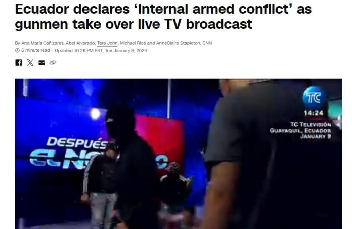 據美國有線電視新聞網(CNN)報道,該法令發(fā)布前不久,一伙武裝人員闖入厄瓜多爾西南部瓜亞基爾市一家電視臺,并挾持電視臺工作人員。
