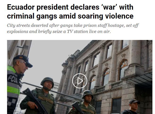 中新網1月11日電 綜合外媒報道,厄瓜多爾總統(tǒng)諾沃亞當?shù)貢r間10日宣布,該國正處于“戰(zhàn)爭狀態(tài)”。