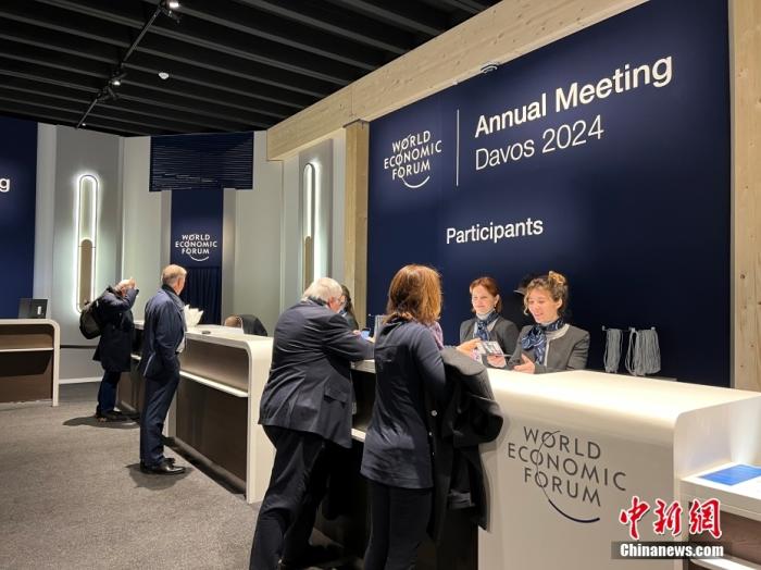 資料圖:當(dāng)?shù)貢r間1月15日,與會人員進行參會注冊領(lǐng)取證件。當(dāng)日,世界經(jīng)濟論壇2024年年會在瑞士東部小鎮(zhèn)達沃斯拉開帷幕。