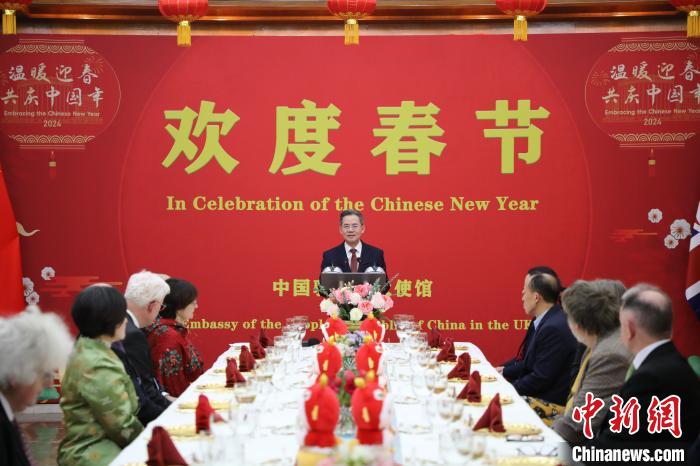 1月18日,中國駐英國大使鄭澤光和夫人華梅參贊舉辦專場招待會,邀請2023年新增選的中國科學院和中國工程院英籍院士及夫人參加,共度中國農(nóng)歷臘八節(jié),共迎新春佳節(jié)。圖為活動現(xiàn)場。(駐英使館供圖)
