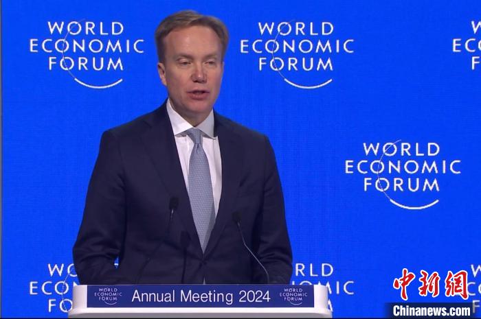 當(dāng)?shù)貢r間1月19日,世界經(jīng)濟論壇2024年年會在瑞士達沃斯閉幕。圖為世界經(jīng)濟論壇總裁博爾格·布倫德發(fā)表閉幕致辭。中新社記者 馬秀秀 攝